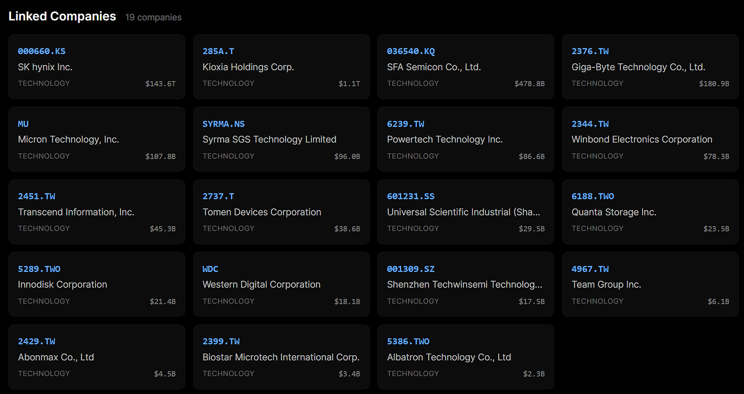 Connect companies to the theme so you can see which names are linked to each resource and keyword, with sector and market cap for context.