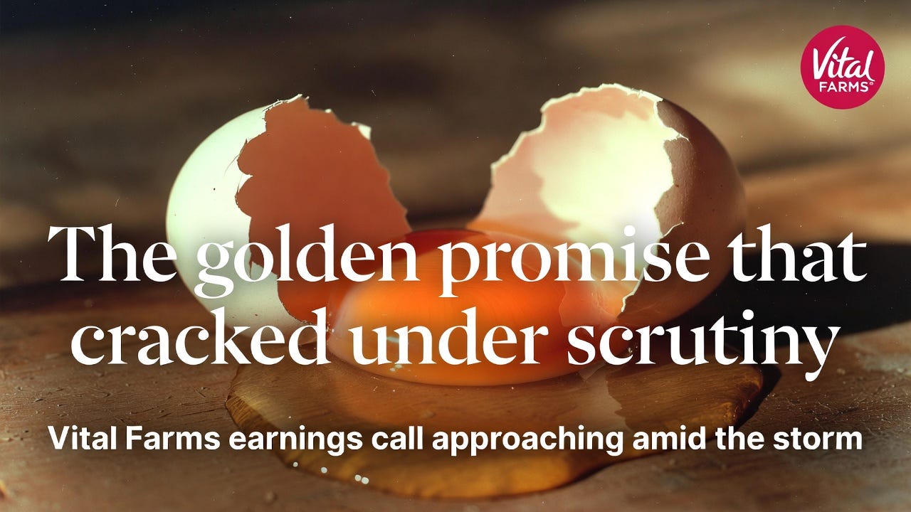 Investment Thesis: Vital Farms is accused of misleading health claims after omega-6 testing. Alternative data shows consumer boycott momentum since mid-January, but Q1 earnings won't reveal actual sales impact until May 2026 and credit card data release, creating information arbitrage window.